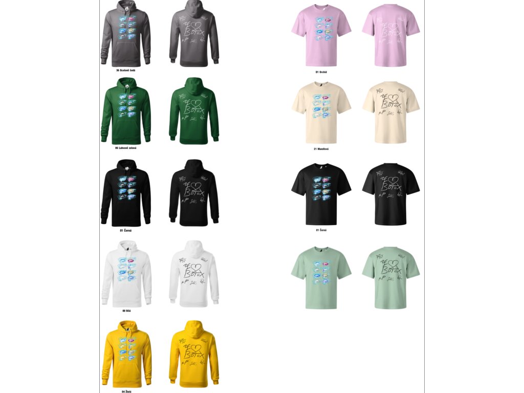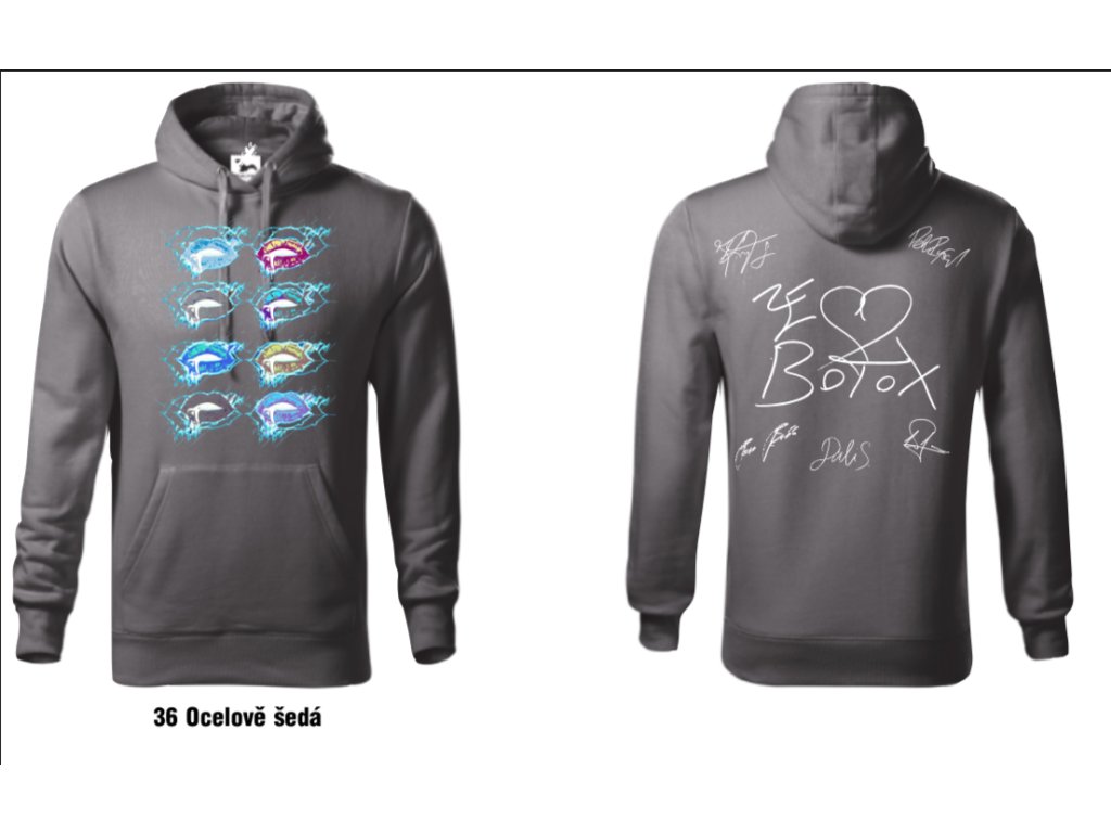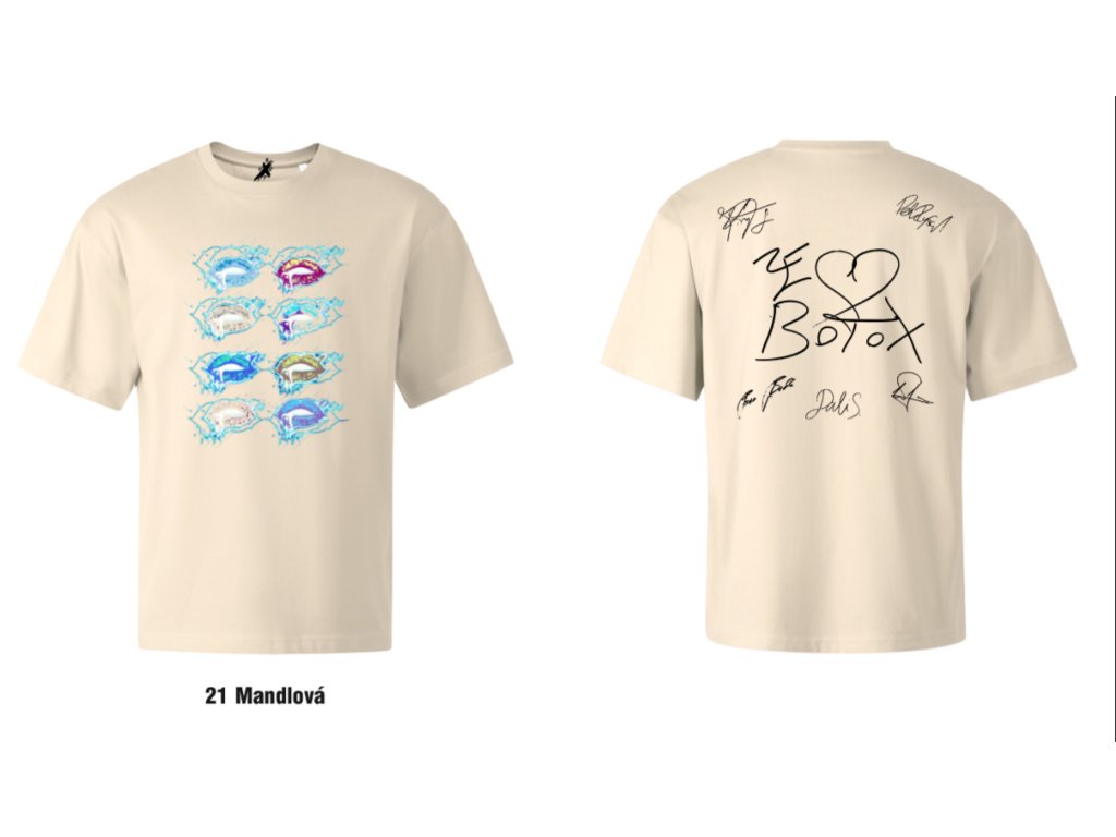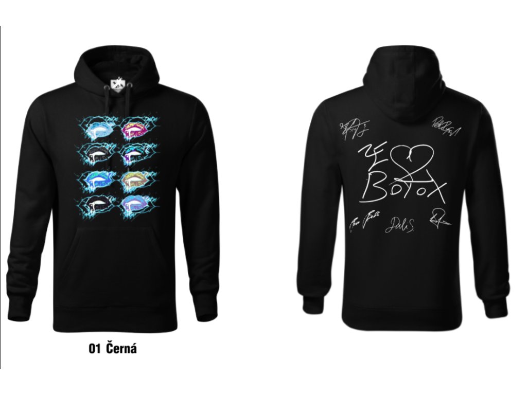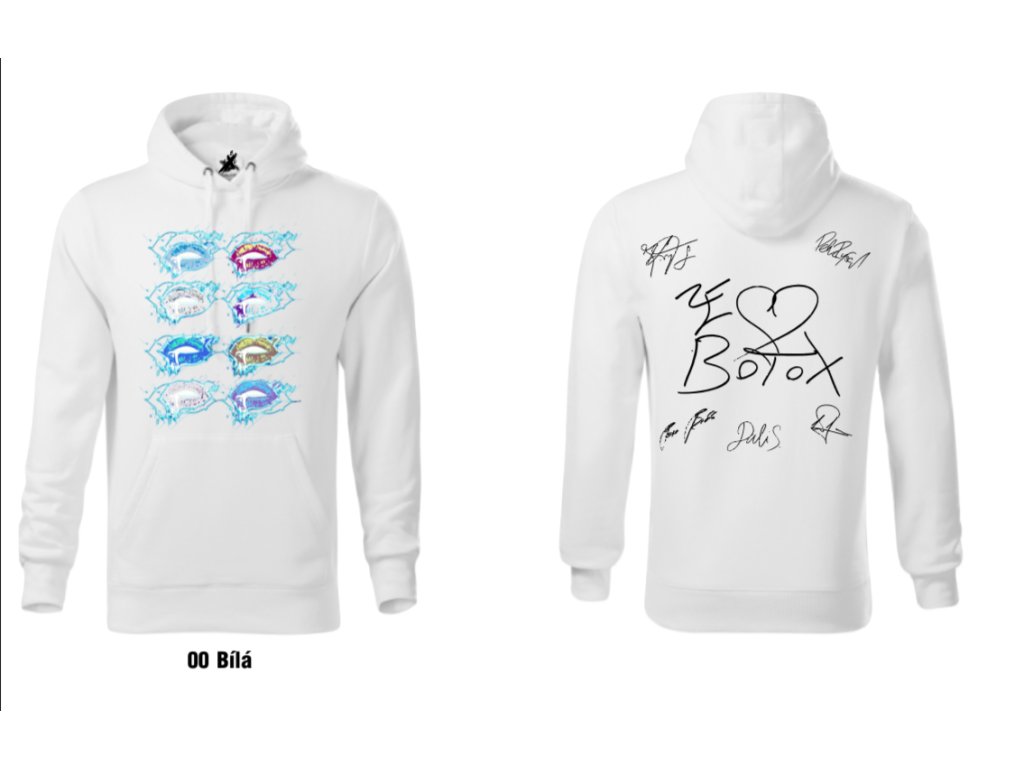 Chtěli jste barvy, máte je mít! Jako poděkování jsme pro vás vytvořili LIMITOVANOU kolekci Botox ICE s ledovými pusinkami. Můžeš si vybrat mikinu z pěti barev a trička ze čtyř barev, podle toho, které jste vybrali na sítích. Poprvé ne jedna, ale rovnou osm ledových pusinek a poprvé tištěné ručně psané věnování se všemi podpisy. Takže pokud nepereš v savu nebo kyselině, podpisy ti zůstanou na pořád. K tomu všemu jeden měkounký polštářek, stejně jako interpreti na něm :-D Ani jednu z těchto věcí nebude možné koupit samostatně a už se nebudou opakovat.